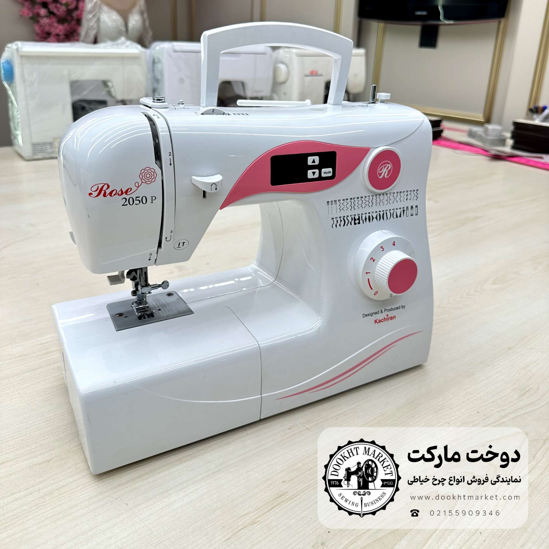 چرخ رُز الكترونيكي داراي 50 انتخاب طرح دوخت ميباشد كه سه انتخاب آن جهت انجام دوخت جادکمه بوده و دوخت جادکمه توسط يك مكانيزم مكانيكي و الكترونيكي مجزا اجرا ميگردد كه نسبت به چرخهاي مكانيكي مكانيزم اجراي آن بسيار ساده تر صورت مي گيرد. دوختهاي چرخ الكترونيكي شامل دوختهاي نرمال و دوختهاي تزئيني مي باشند كه دوختهاي تزئيني با چرخهاي مكانيكي قابل اجرا نمي باشند چرخ رُز الكترونيكي 2050 داراي دو دکمه انتخاب دوخت ميباشد كه هم ميتوان با يك بار كليك كردن دکمه ها، يكي يكي شماره دوختها را كم يا زياد نمود چرخ رُز الكترونيكي 2050 داراي يك دکمه مُد mode ميباشد كه دو حالت دارد، يكي اينكه با يك بار كليك كردن آن اندازه عرض دوخت نمايش داده مي شود كه كاربران ميتوانند در اين حال با كمك دکمه هاي كم و زياد اندازه عرض دوخت را از 1 تا 0 تغيير بدهند. حالت دوم اينكه با كليك كردن و نگه داشتن دکمه مُد ميتوان چرخ را در حالت دوخت با سوزن دوقلو قرار داد كه در اين حالت عرض دوخت بطور اتوماتيك براي حالت سوزن دوقلو تنظيم ميشود (در حالت سوزن دوقلو با يك بار كليك دکمه مُد ميتوان عرض دوخت را با كمك دکمه هاي كم و زياد از 1 تا 3 تغيير داد و با كليك دکمه مُد و نگداشتن آن از حالت سوزن دوقلو خارج مي گردد) چرخ رُز الكترونيكي 2050 داراي سنسور ميل پايه ميباشد كه اين سنسور باعث ميشود وقتي كه پايه دوخت در وضعيت بالا قرار مي گيرد چرخ كار نكند. اين سيستم براي بالا بردن امنيت كار با چرخ مي باشد چرخ رُز الكترونيكي 2050 داراي دکمه سوزن بالا/پايين مي باشد كه در حالت عادي با برداشتن پا از روي پدال سوزن همواره در وضعيت بالا خواهد ايستاد تا كاربر بتواند پارچه را خارج نمايد، با كليك بر روي دکمه سوزن بالا/ پايين موقعيت ايست سوزن در حالت پايين تنظيم مي شود و با برداشتن پا از روي پدال سوزن همواره در وضعيت پايين (داخل پارچه) مي ايستد تا كاربر بتواند بدون جابجا شدن محل دوخت به راحتي در هر جهتي كه نياز دارد پارچه را بچرخاند